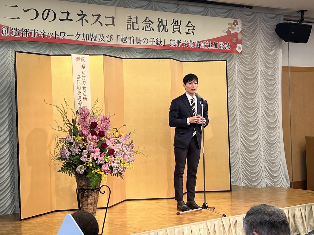 二つのユネスコ~ユネスコ創造都市ネットワーク加盟及び「越前鳥の子紙」無形文化遺産追加登録~記念祝賀会に出席しました