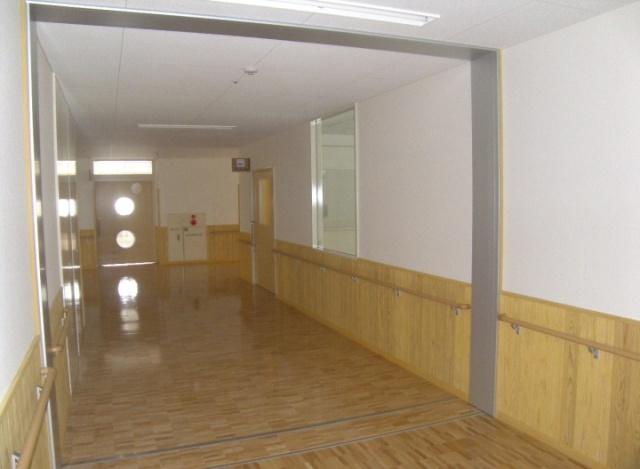 地域性に配慮した建築物とし、玄関ガラスに越前和紙や腰壁などに県産杉材を採用するなど、県産品の活用を図っています。